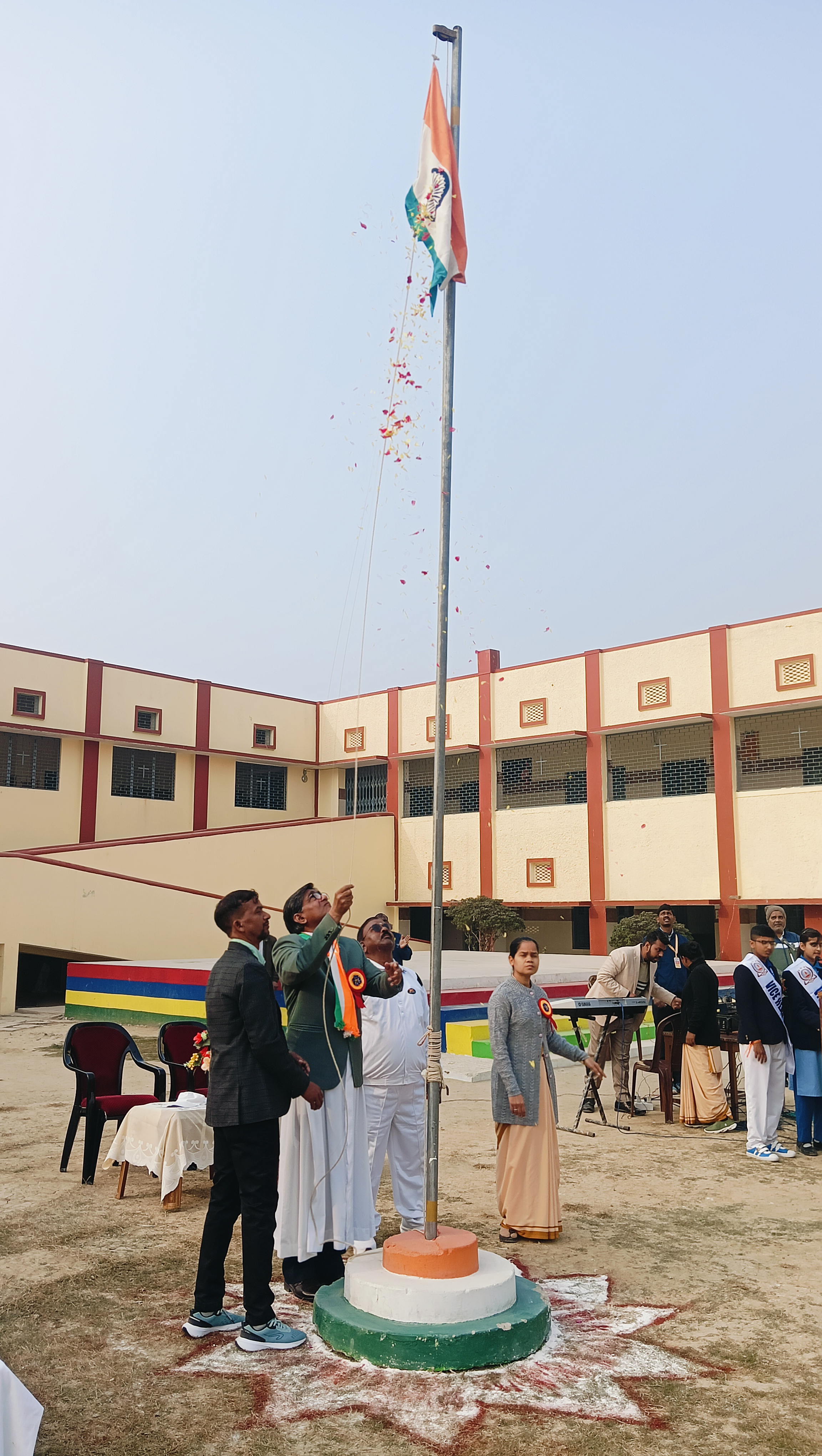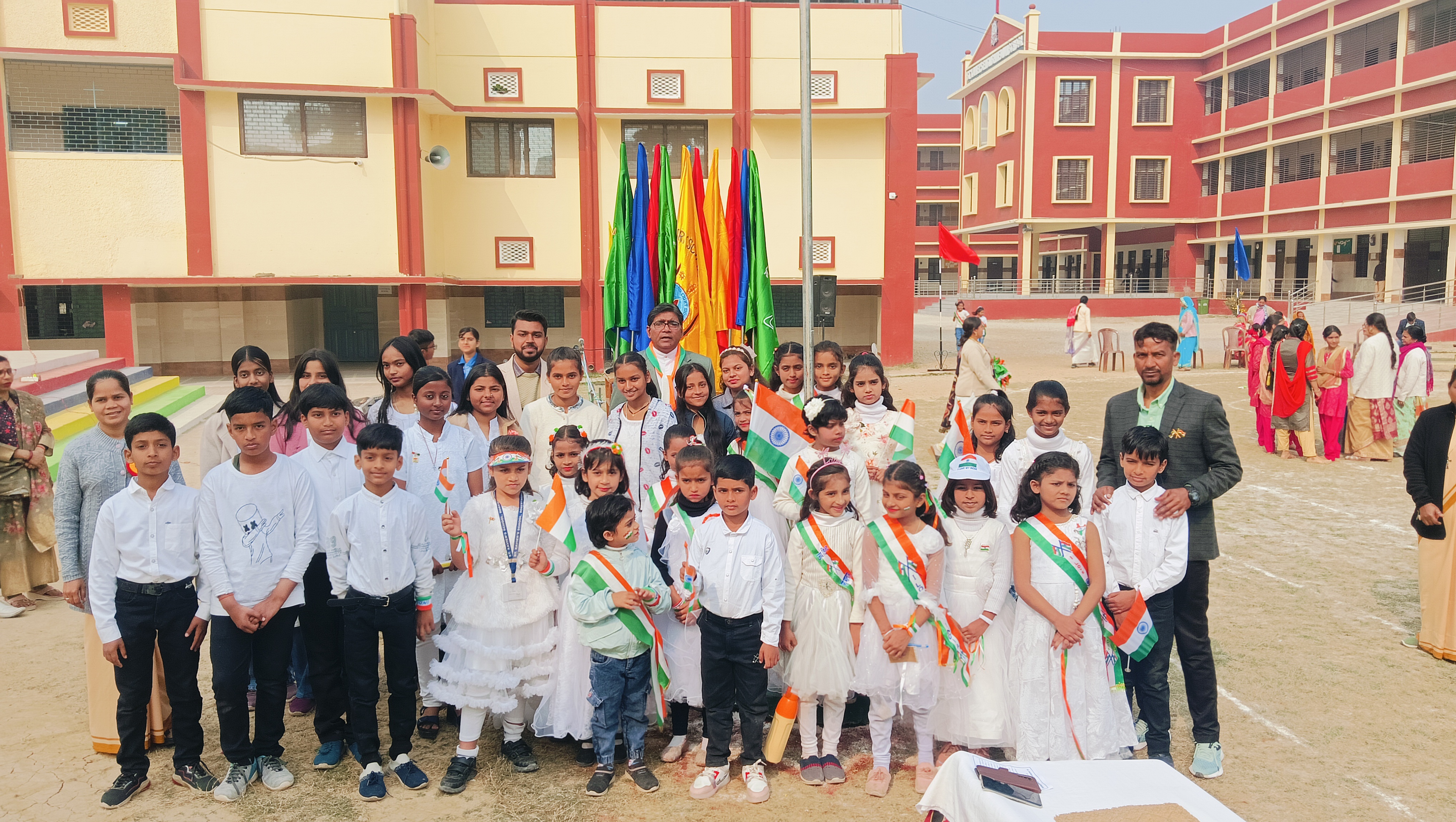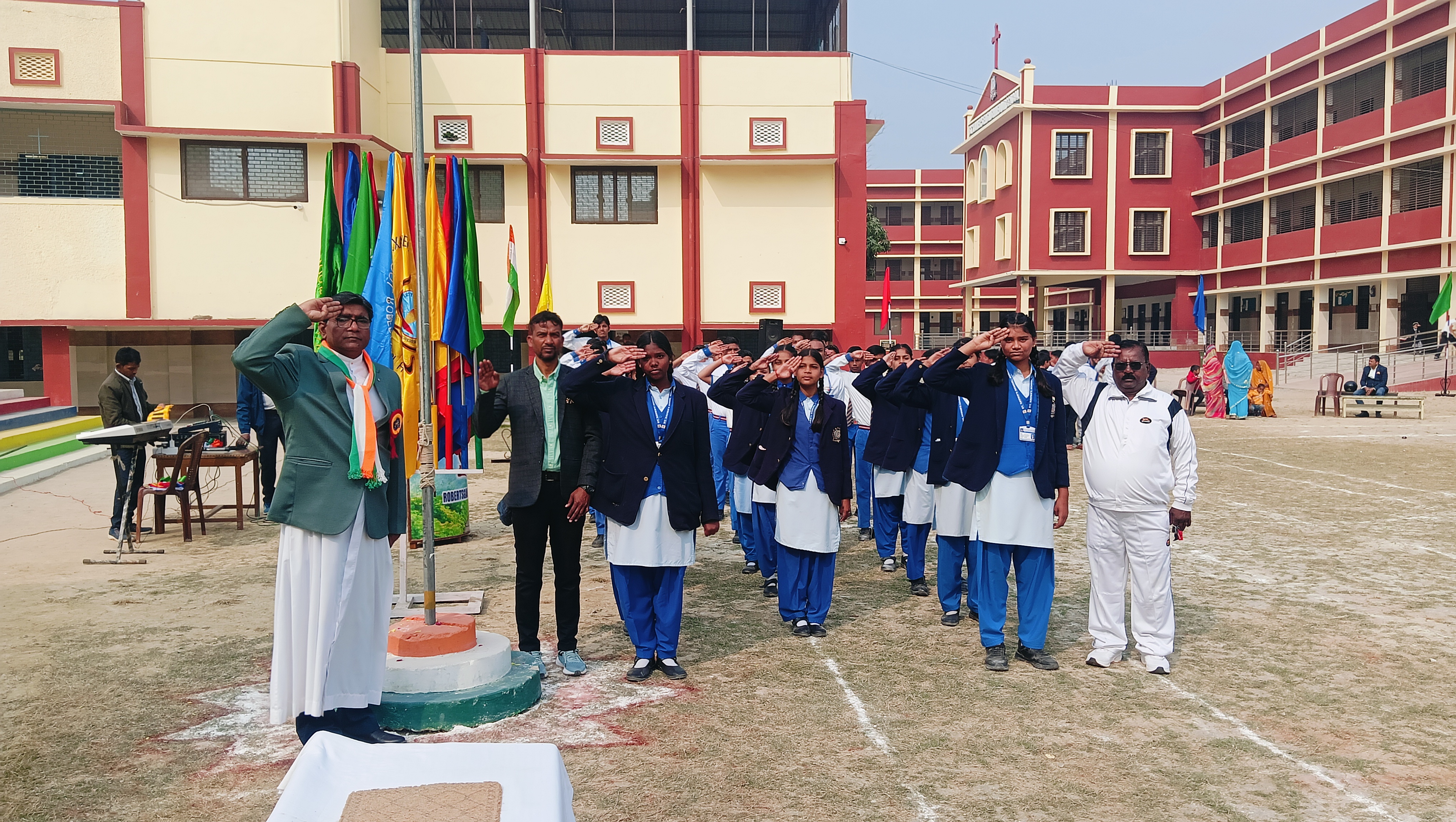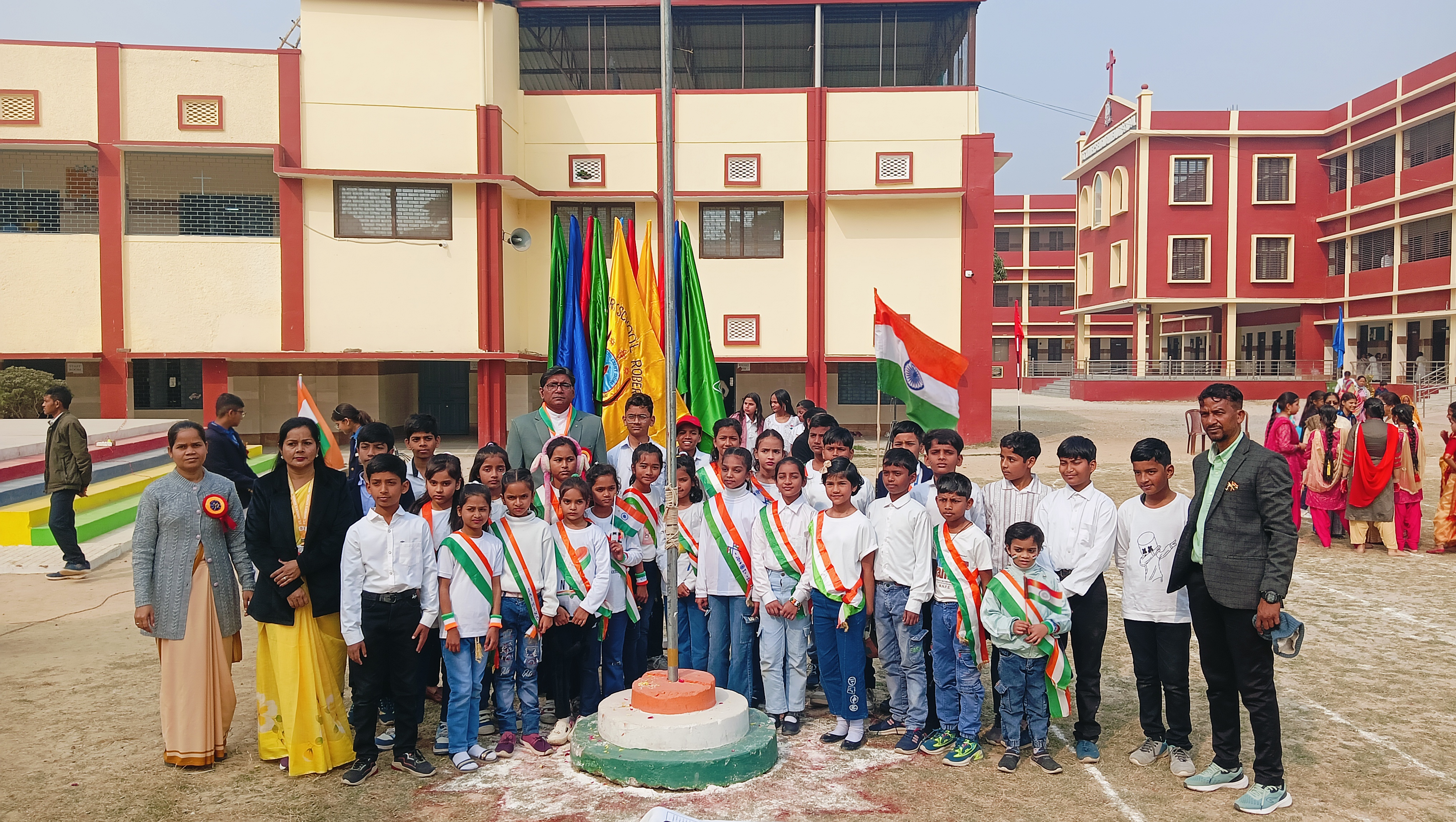 St. Xavier's School, Robertsganj, proudly celebrated the 77th Republic Day of India on 26th January 2026 with great enthusiasm and patriotic fervor. The program began with the unfurling of the National Flag, followed by the singing of the National Anthem, filling the campus with pride and unity.
